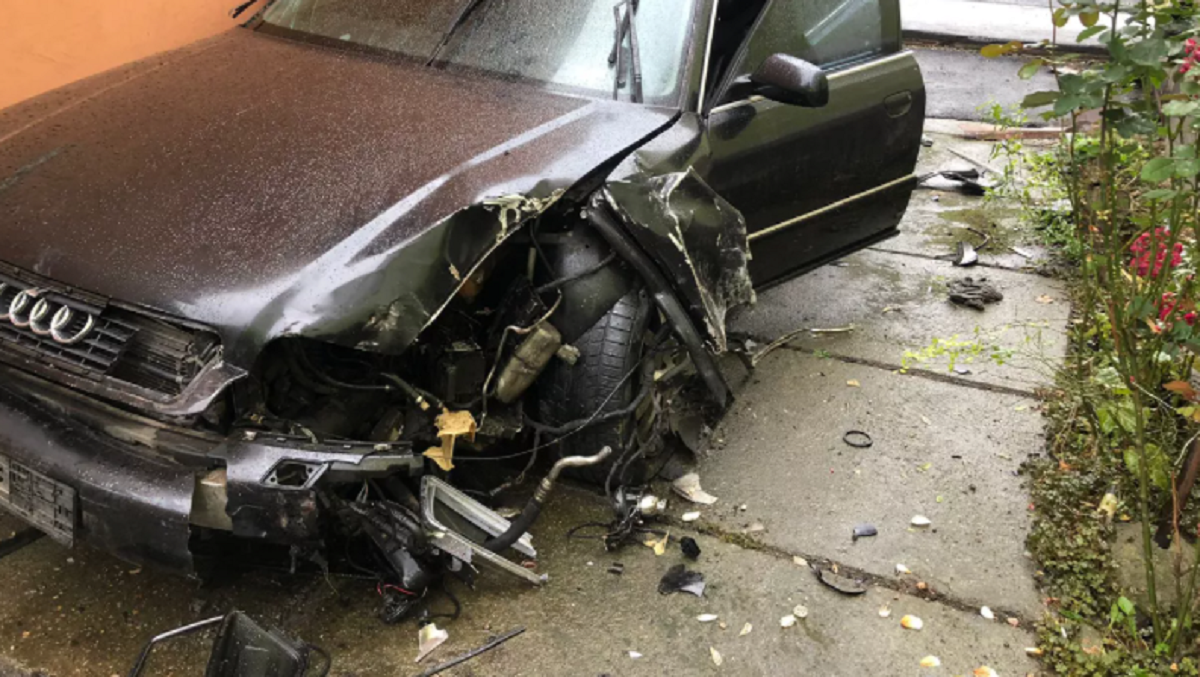 Caz șocant în Arad! O bătrână s-a trezit cu o mașină avariată în curtea casei. Șoferul este căutat de poliție