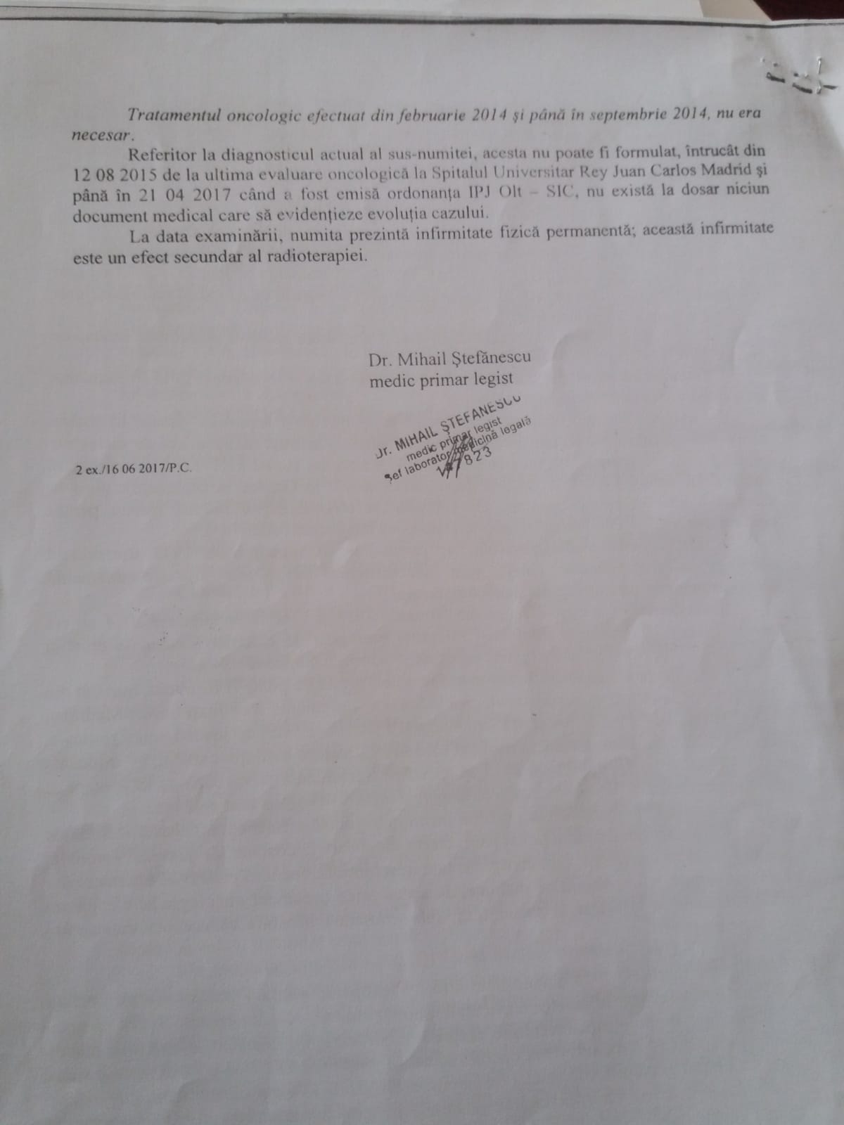 Legiștii români confirmă: nu era necesar tratamentul oncologic