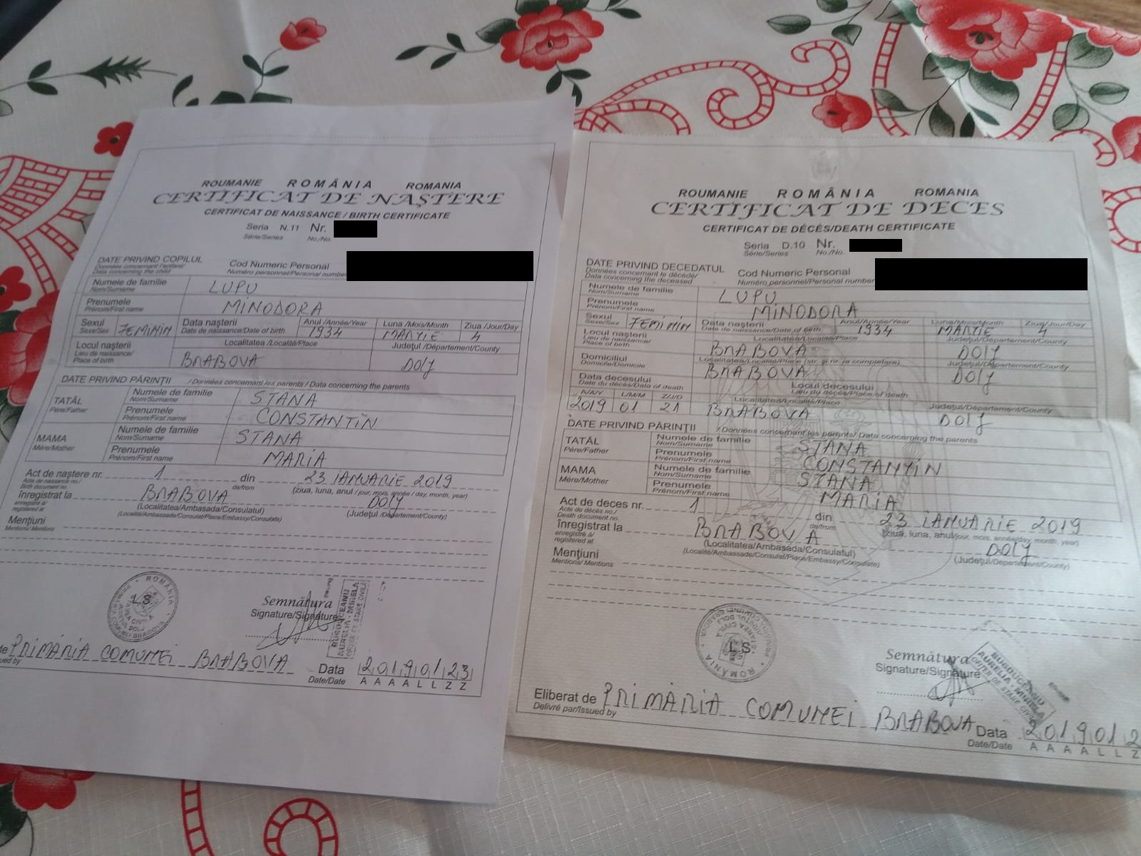Primăria din Brabova a eliberat un certificat de naștere în loc de unul de deces pentru bătrâna Minodora