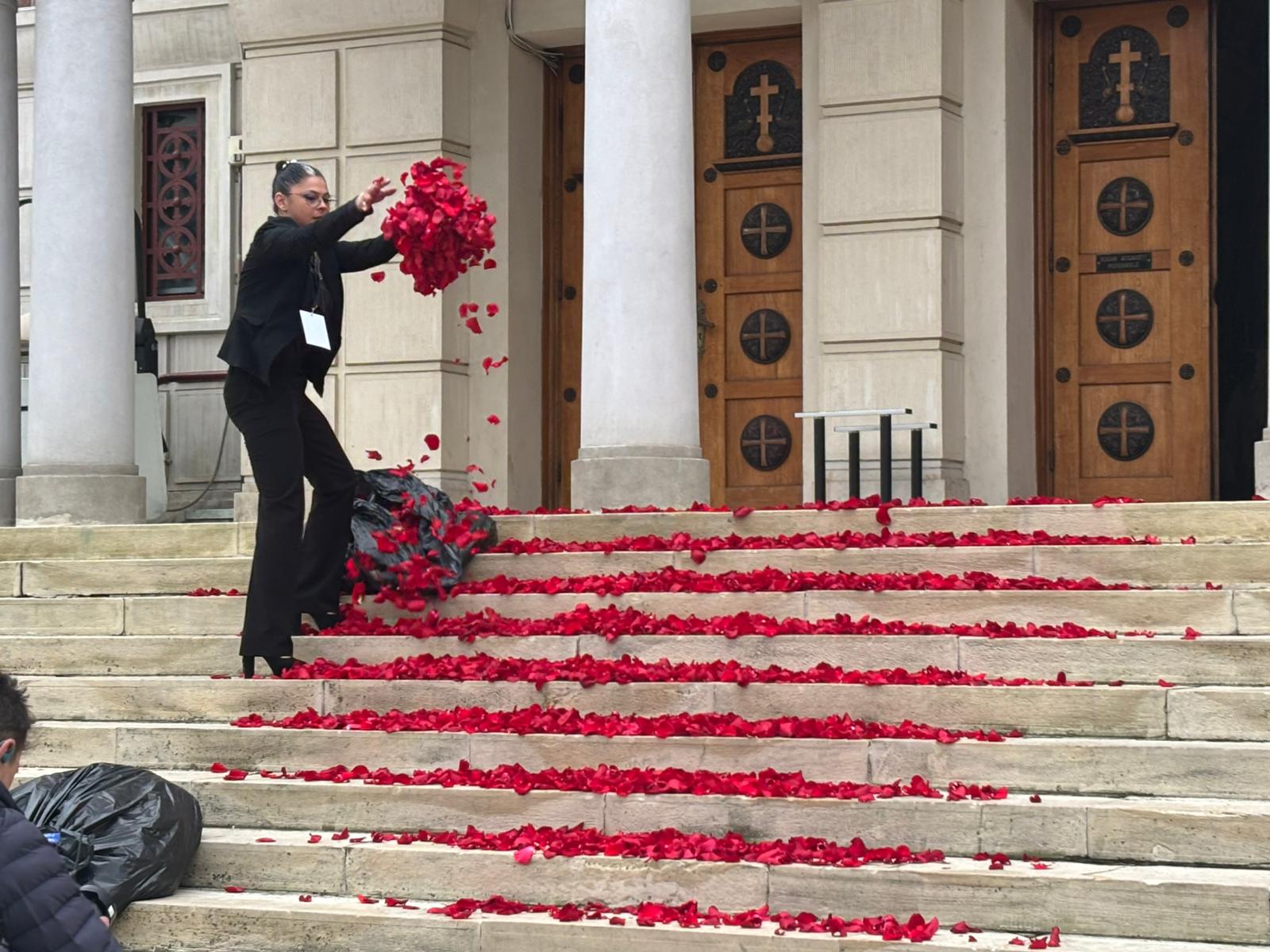 Ce a apărut pe treptele bisericii unde se va ține slujba de înmormântare a lui Mircea Lucescu? Imagini impresionante