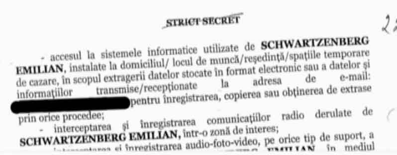 Mandatul de interceptare pe numele lui Elan Schwartzenberg