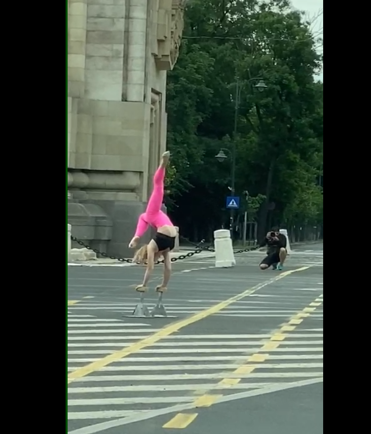 Ce făcea această tânără la ora 8 dimineaţa, în faţa Arcului de Triumf. Trecătorii au crezut că nu văd bine| FOTO şi VIDEO