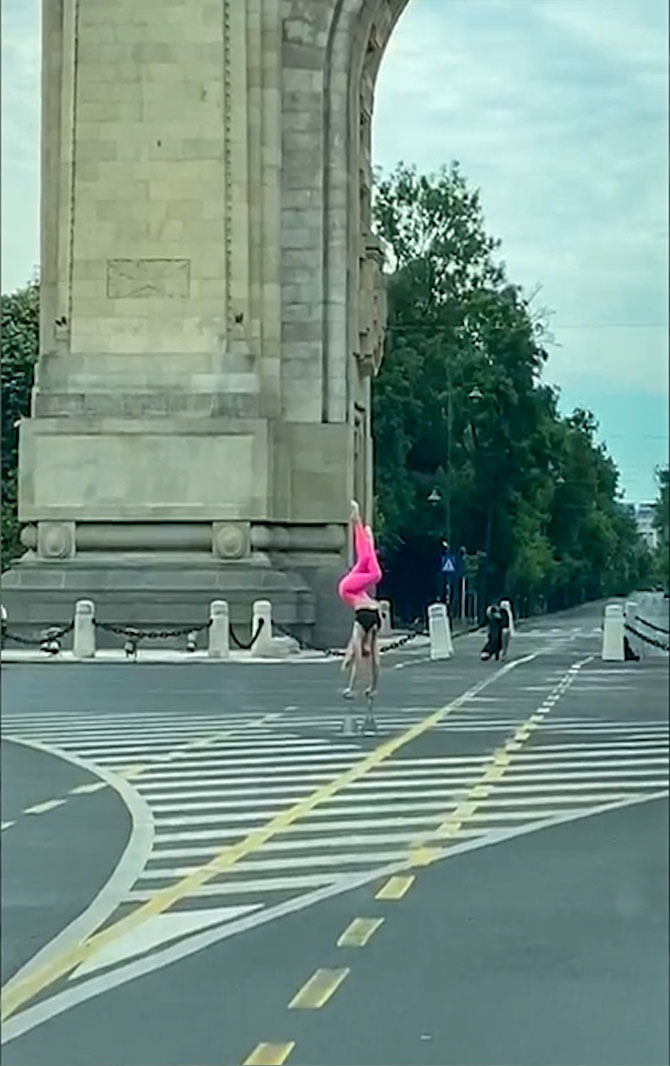 Ce făcea această tânără la ora 8 dimineaţa, în faţa Arcului de Triumf. Trecătorii au crezut că nu văd bine| FOTO şi VIDEO