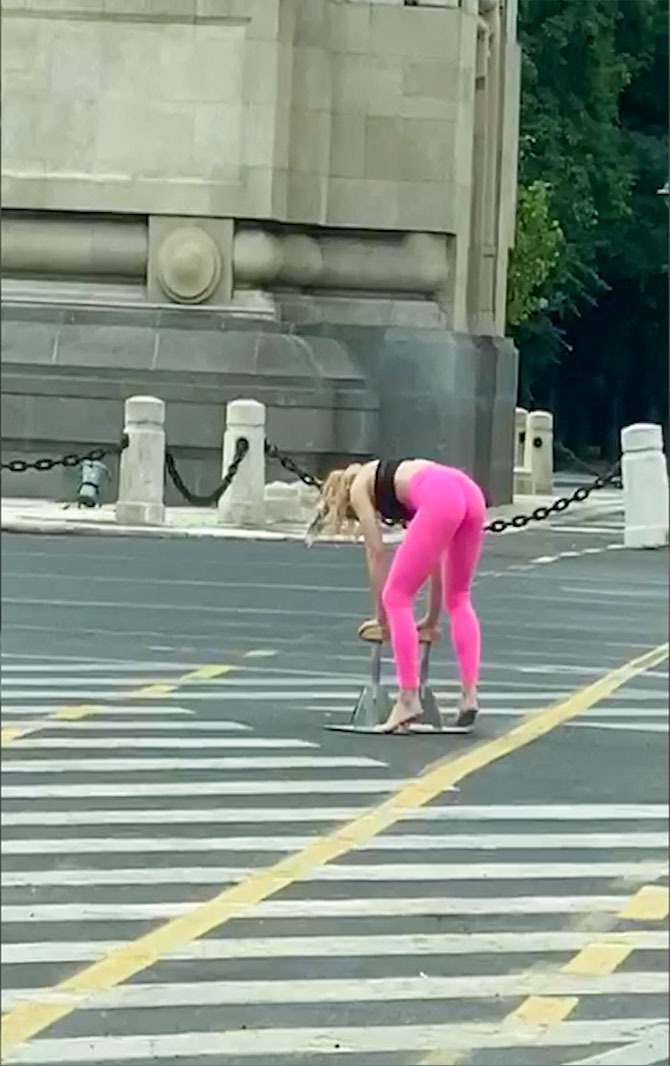 Ce făcea această tânără la ora 8 dimineaţa, în faţa Arcului de Triumf. Trecătorii au crezut că nu văd bine| FOTO şi VIDEO