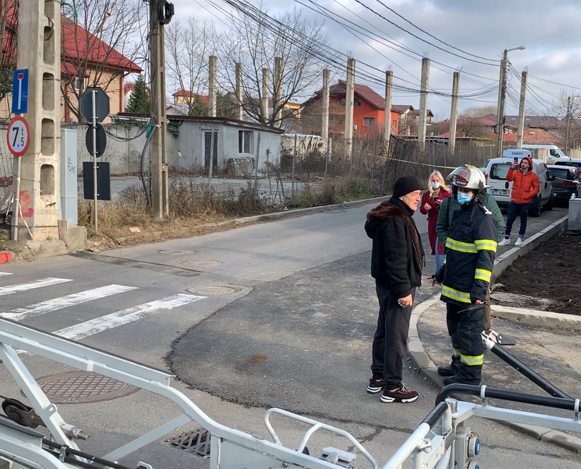 Gigi becali stă de vorbă cu pompierii chemați la fața locului (Foto: CANCAN.RO)