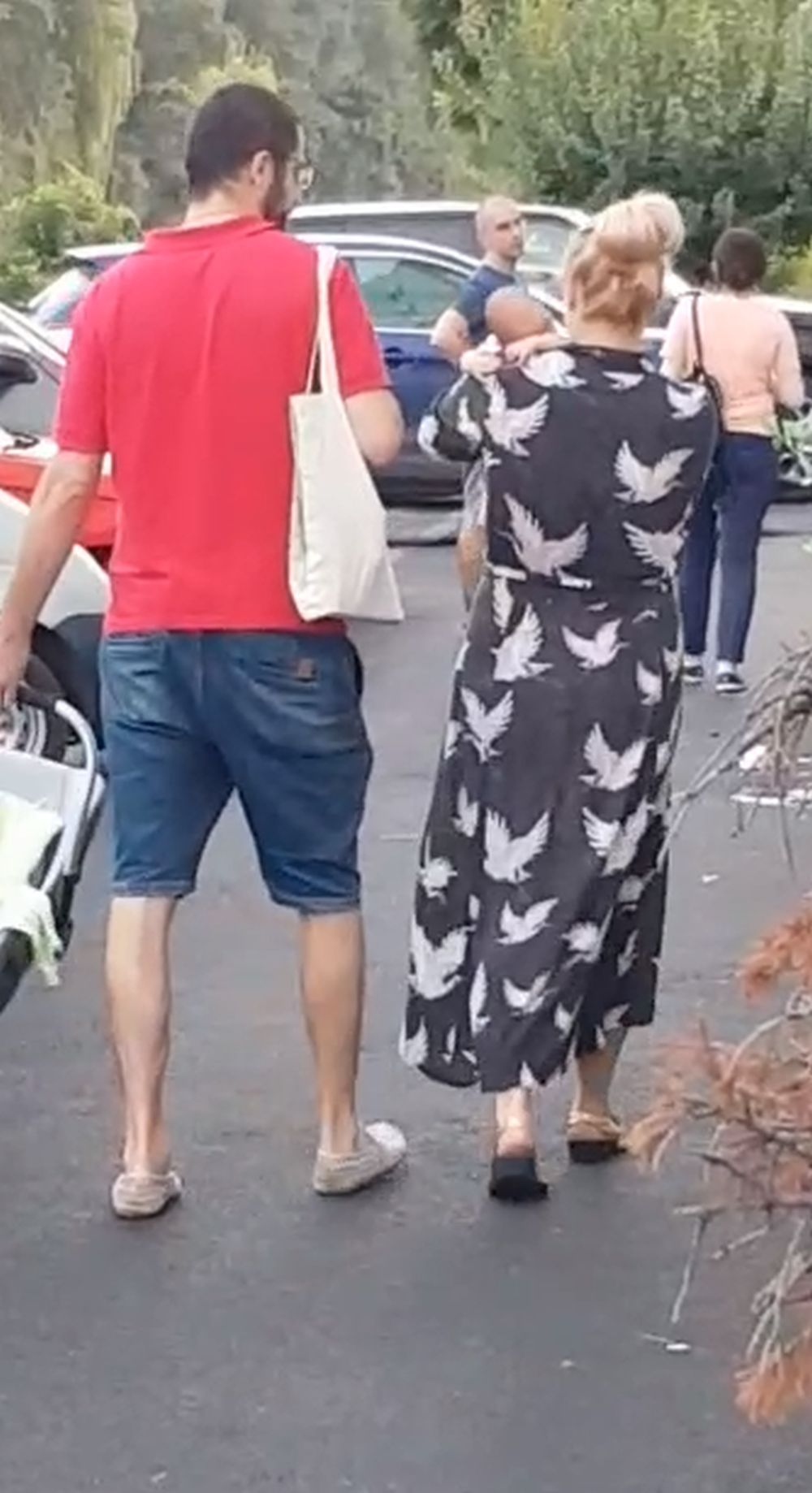 Andreea Gramoșteanu și soțul și băiețelul lor, la ieșirea din maternitate