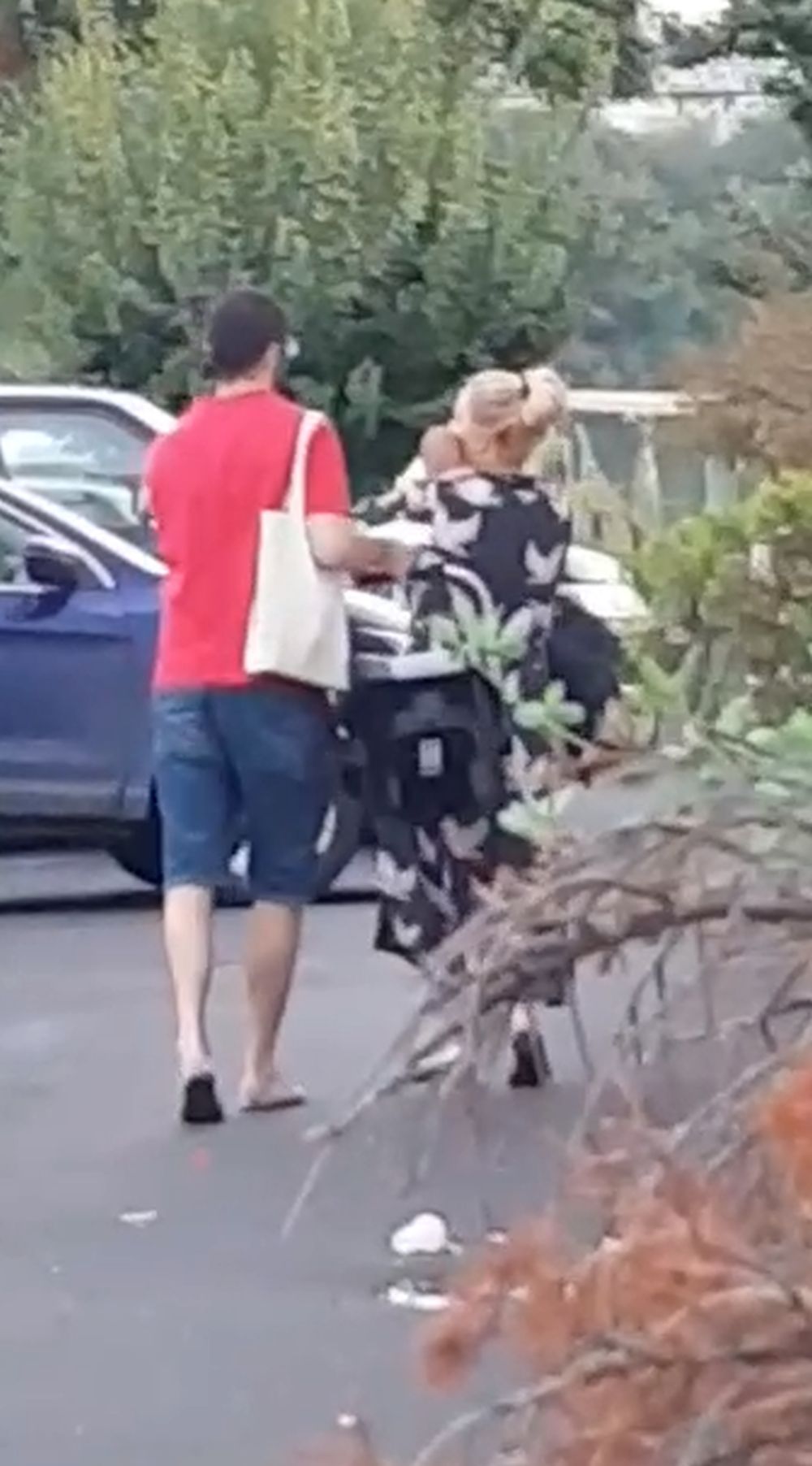 Andreea Gramoșteanu și soțul și băiețelul lor, la ieșirea din maternitate