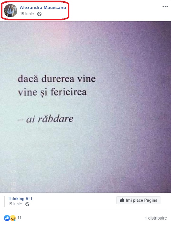 Ce mesaj dureros a postat Alexandra Măceșanu pe Facebook înainte să fie răpită și omorâtă în Caracal