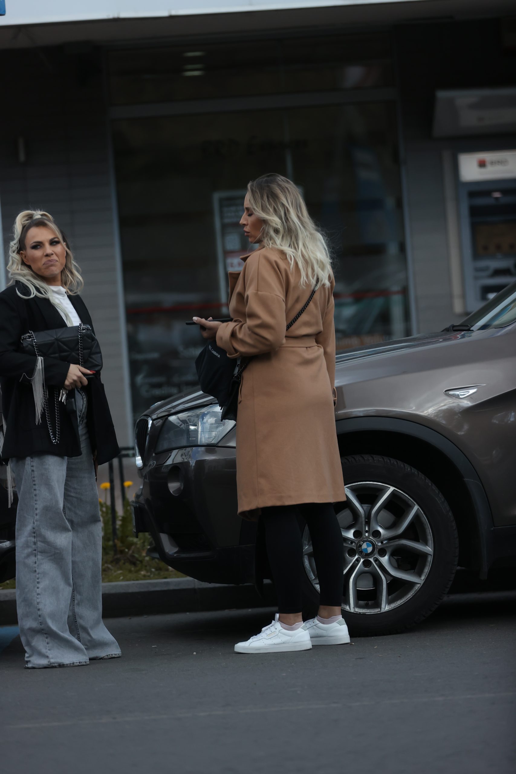 Amna și Adina Halas continuă în stradă discuția din restaurant (Foto: CANCAN.RO)