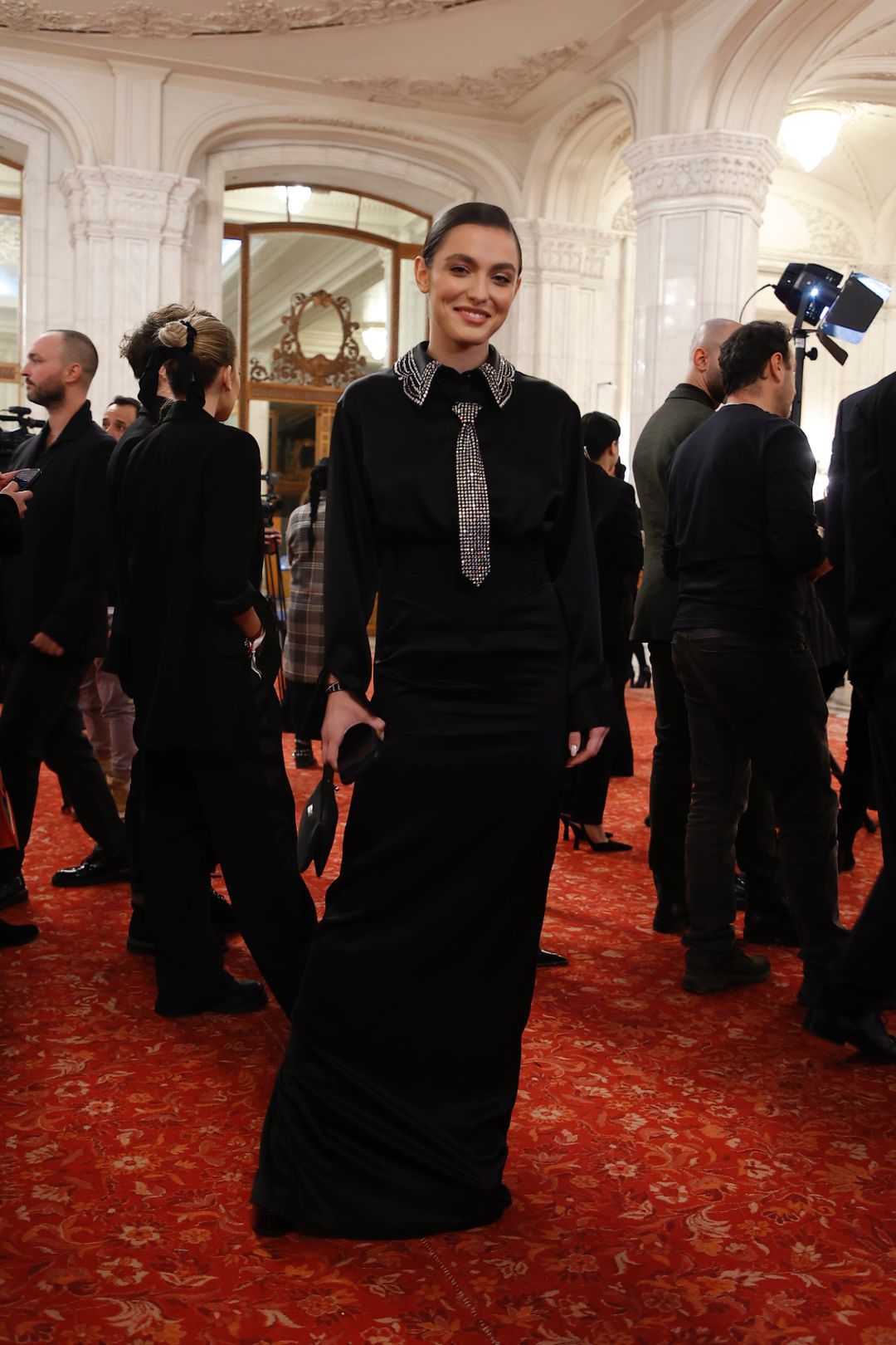 Alexia Eram a surprins cu o rochie lungă, full black, accesorizată cu detalii argintii