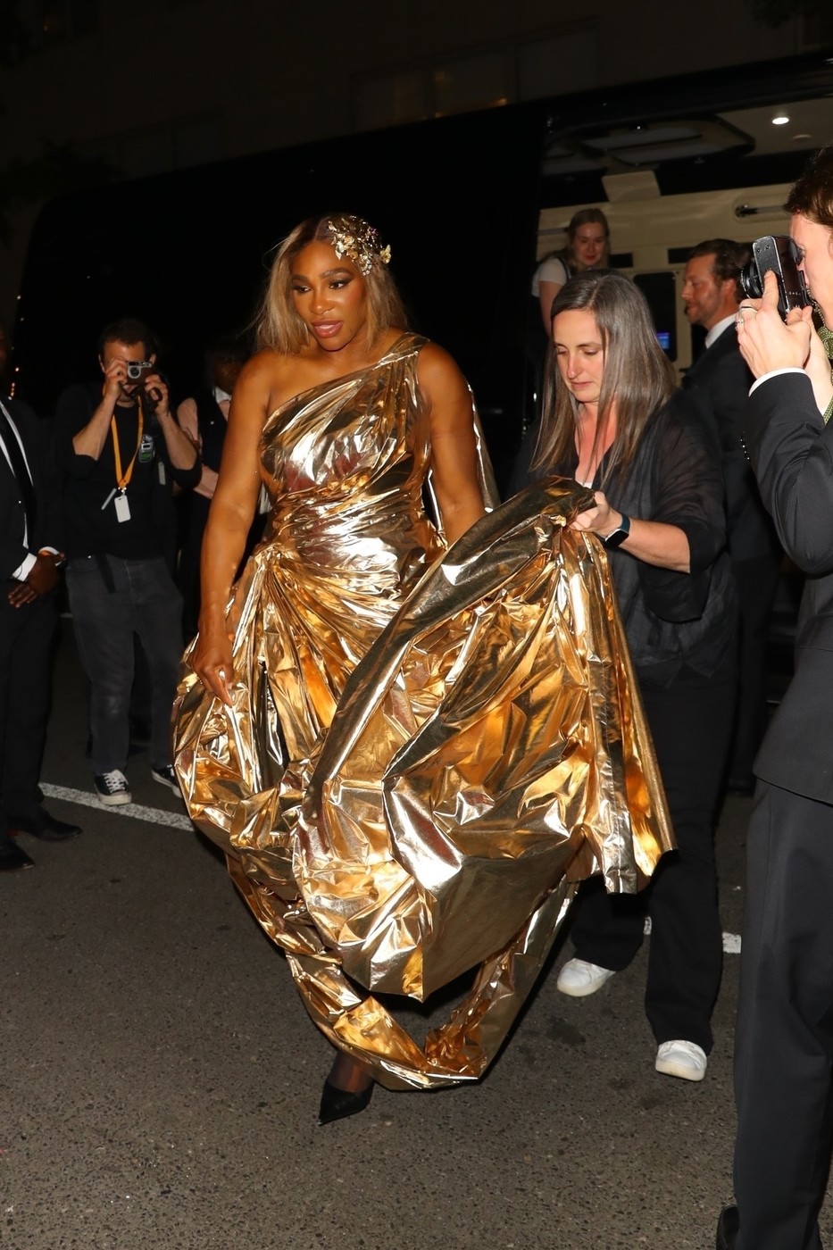 New York, NY - Serena Williams was seen returning to the Mark Hotel after attending the Met Gala. The tennis legend made her way back to the luxurious hotel following a night at the prestigious fashion event in New York City.