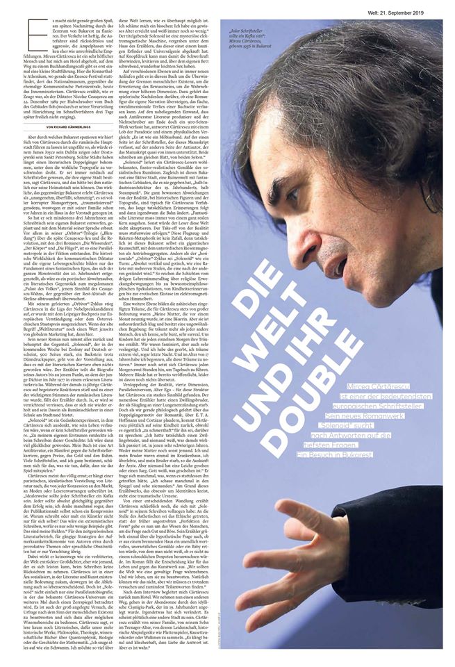 Mircea Cărtărescu, în ”Die Welt”