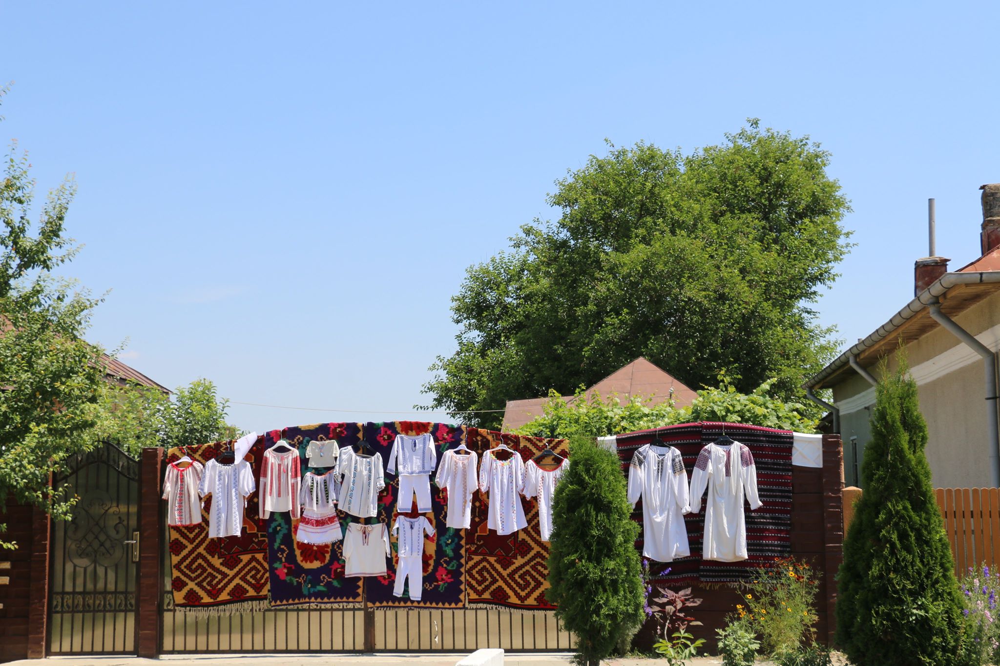 Cezieni, locul unde fetele își expun zestrea pe gard. Sute de ii sunt agățate la porți, pe covoare oltenești și…