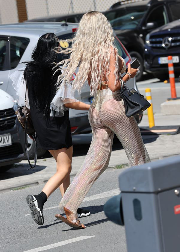 Îmbrăcată ca pentru plajă, Bianca a pornit la o scurtă sesiune de shopping, alături de prietena ei (Foto: CANCAN.RO)