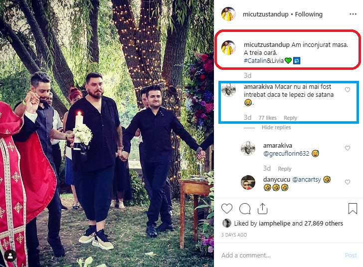 Chiar e o surpriză! Cine sunt nașii lui Cătălin Bordea și ai soției sale, Livia. Gestul neașteptat făcut de comediant în fața preotului