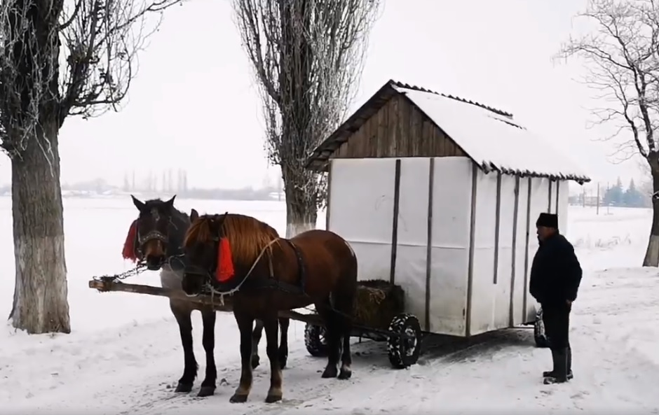 Ciobanul din Botoșani care și-a pus casa pe roți și e trasă de cai! Nea Ion își plimbă nevasta gravidă prin sat