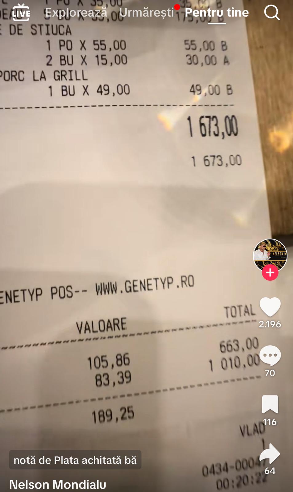 Ce notă de plată colosală a primit Nelson Mondialu’ /Foto: TikTok