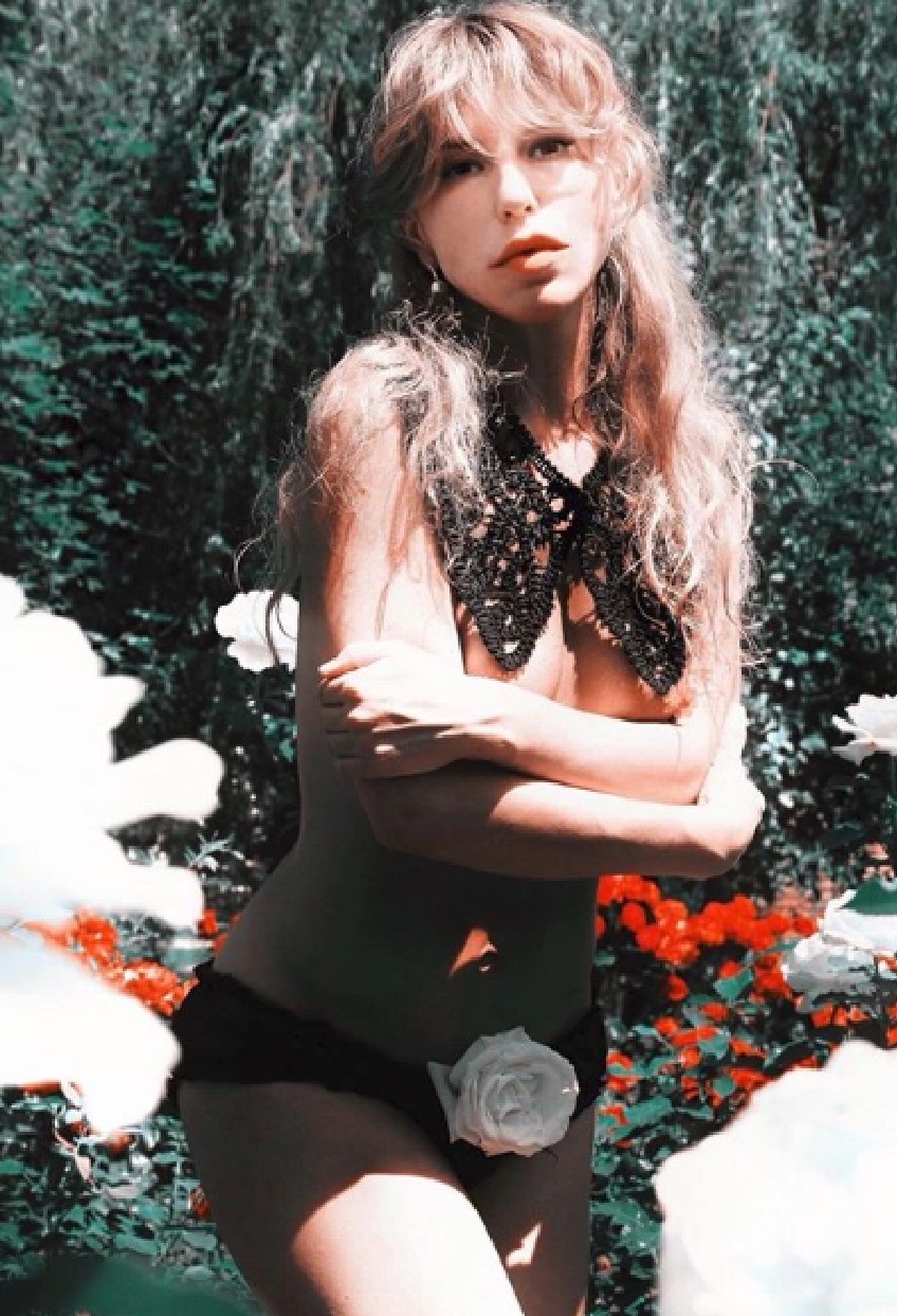 Corina, fotografiată într-o nouă ipostază incitantă + 18: topless și cu un trandafir alb prins în zona intimă