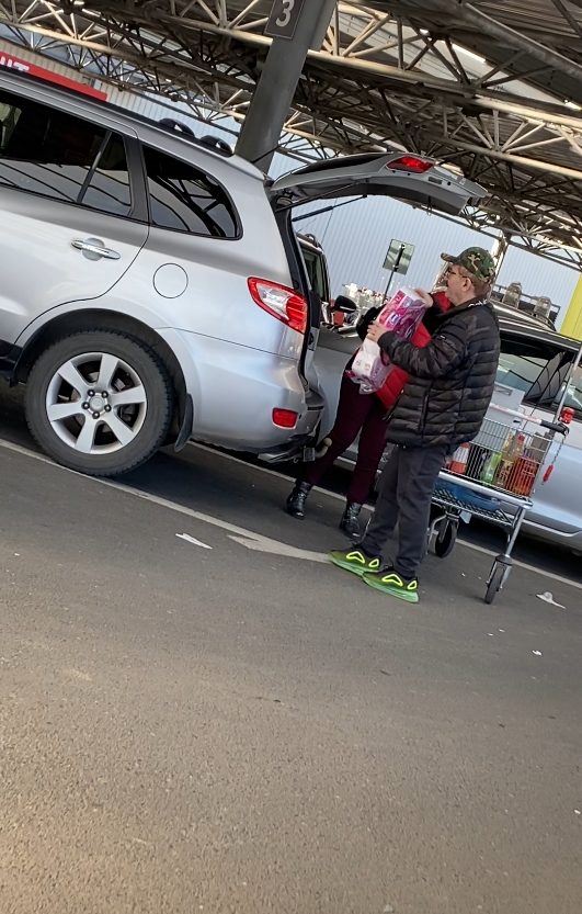Cornel Palade și soția lui descarcă marfa în portbagaj