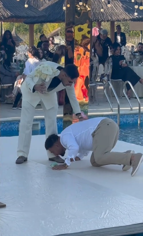 Costel Biju, un tată mândru! A îngenuncheat în fața lui Tony One și i-a cântat la dansul mirilor. Imagini spectaculoase