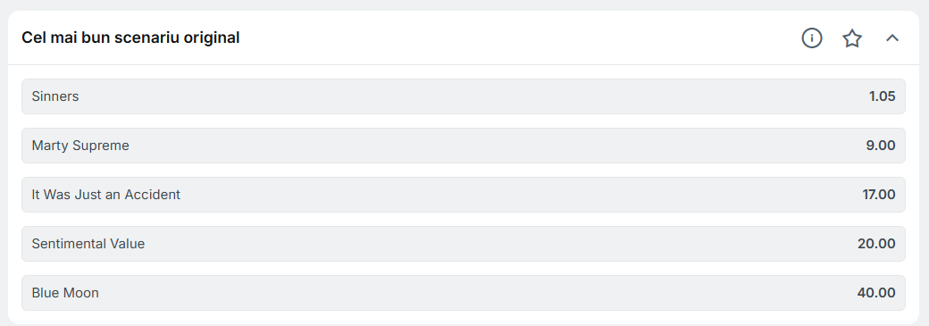 Premiile Oscar 2026: cotele la casele de pariuri. Sursa foto: Superbet