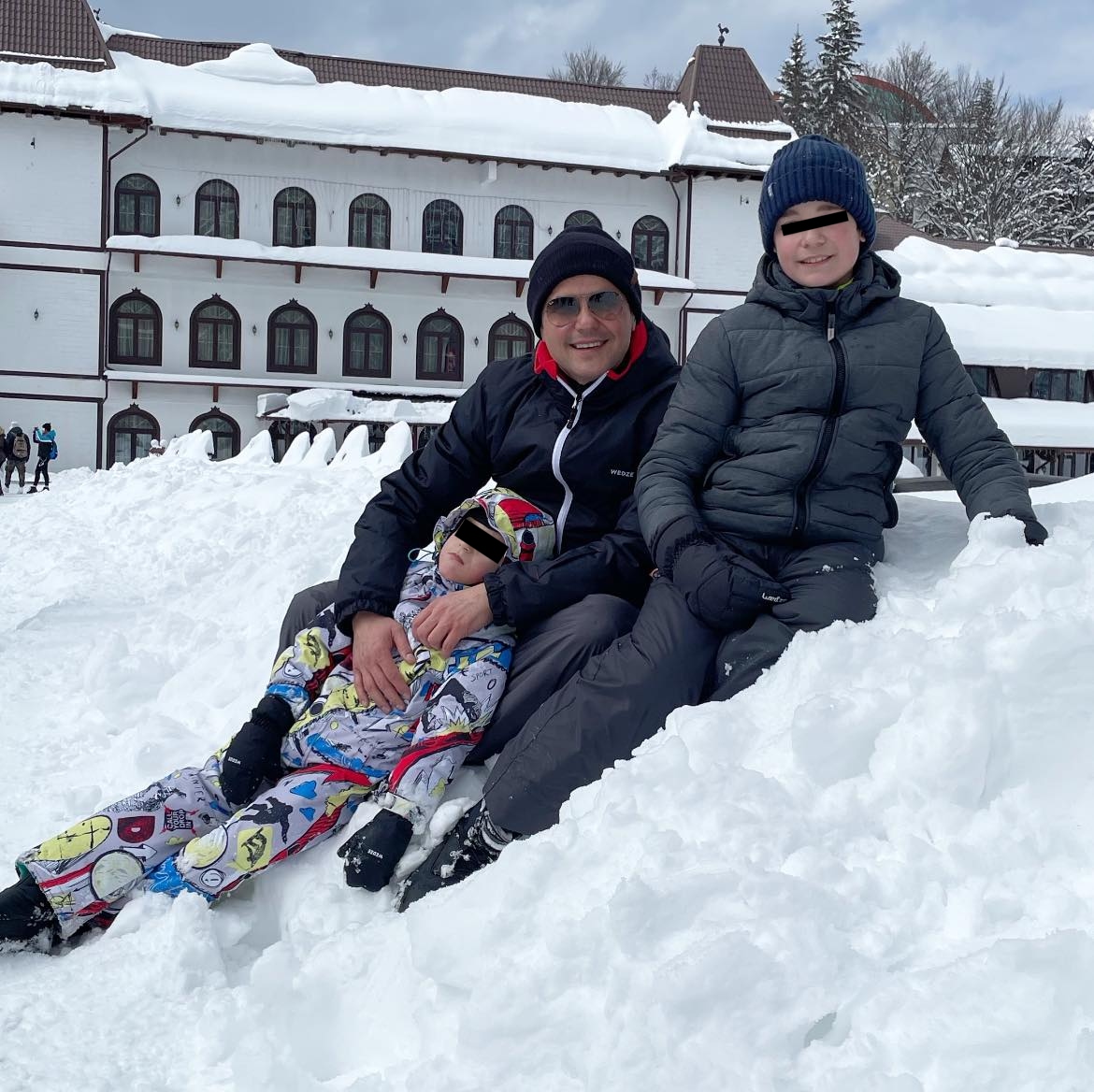 Cove și cei doi copii, la munte