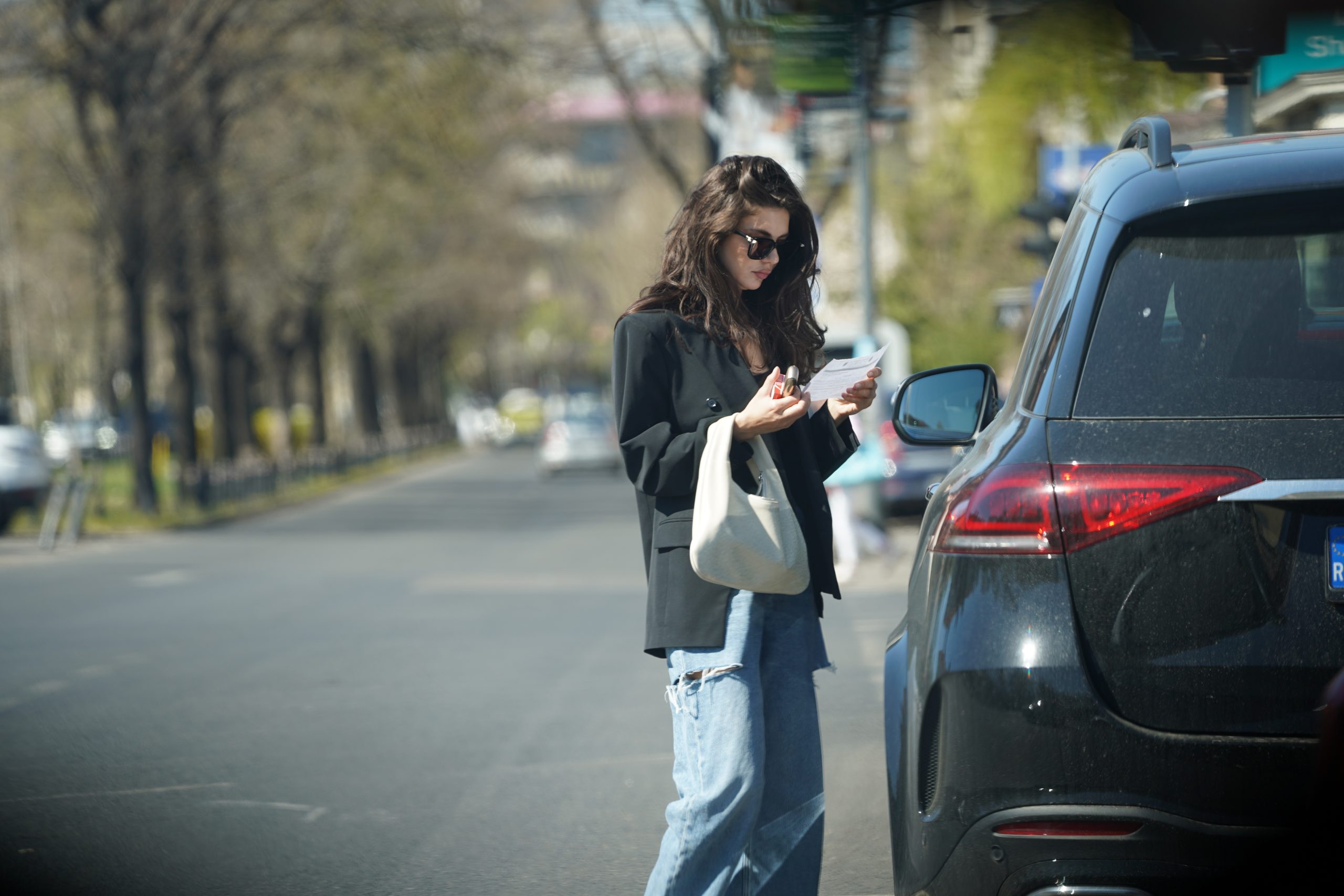 Cristina Ich a luat fluturașul de pe parbriz, imediat ce a ajuns în Dorobanți (Foto: CANCAN.RO)
