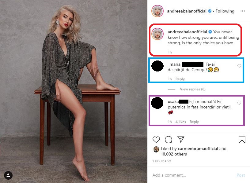 Cu o privire tristă, Andreea Bălan a transmis un mesaj subliminal după ce George Burcea a fost surprins în timp ce se îmbrățișa cu altă femeie