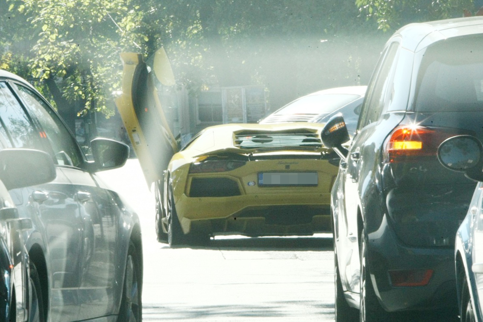 Dan Nicorescu, în vizită la bancă, la bordul unui Lamborghini Aventador