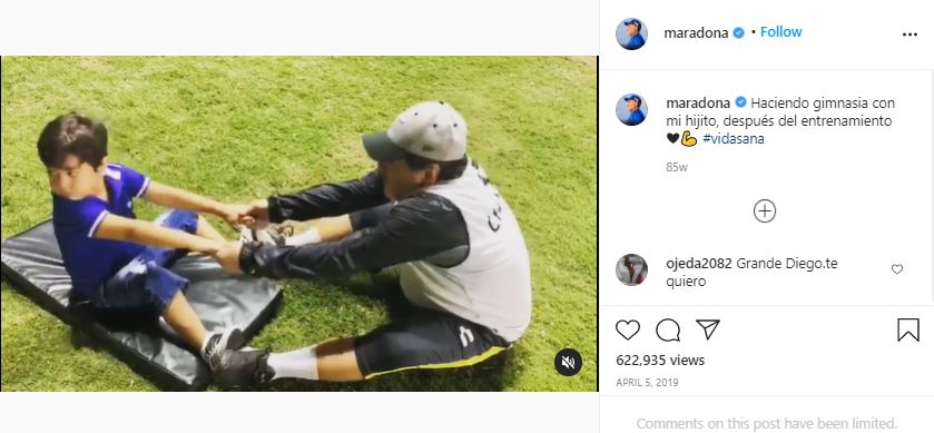 Legendarul fotbalist, alături de fiul său, Diego Fernando Maradona Ojeda © Instagram