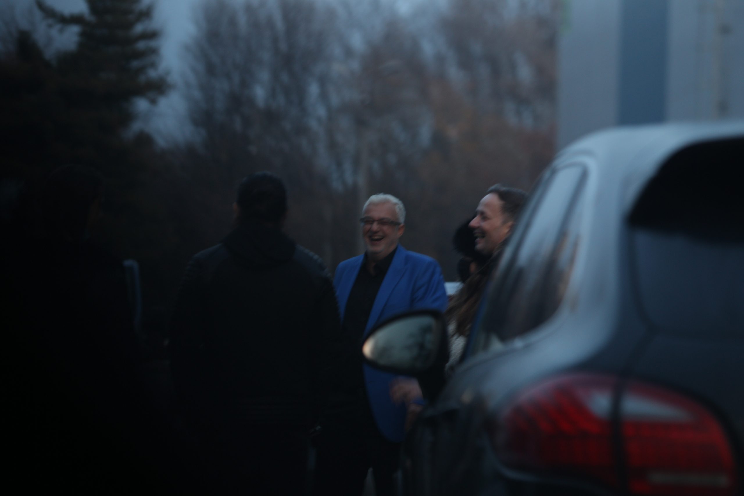 Cătălin Crișan, la o șuetă în pauza de filmare