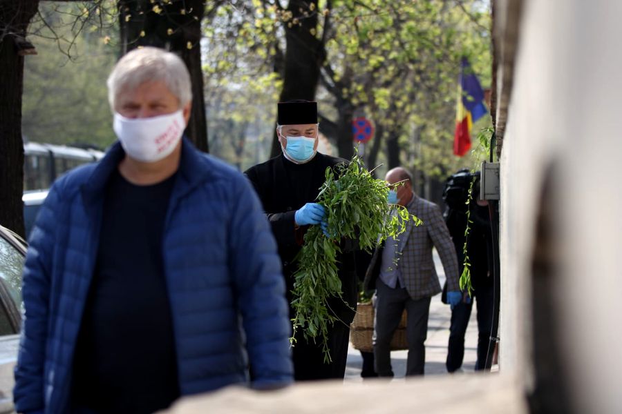 Daniel Tudorache, primarul Sectorului 1, și un preot al Bisericii Cașin împart ramuri de salcie bucureștenilor: ”Căminul fiecărui creștin va fi propria bazilică” | FOTO