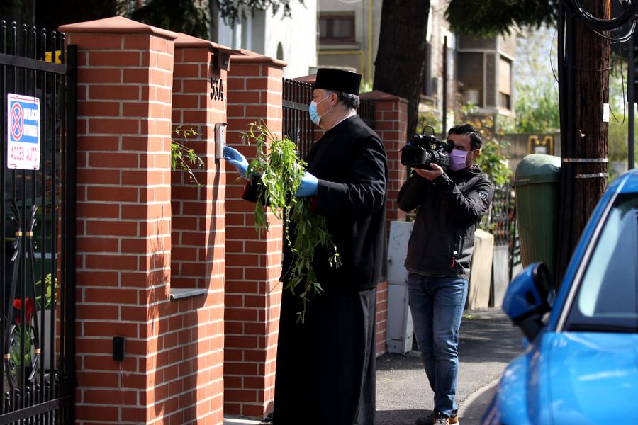 Daniel Tudorache, primarul Sectorului 1, și un preot al Bisericii Cașin împart ramuri de salcie bucureștenilor: ”Căminul fiecărui creștin va fi propria bazilică” | FOTO