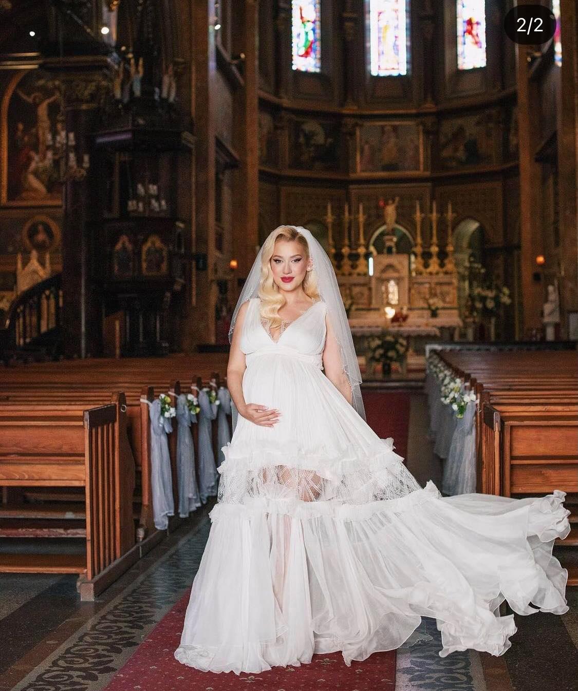 De la cine a „furat” Gabriela Prisacariu rochia de mireasă pentru gravide. O altă vedetă din online a avut aceeași rochie la nuntă