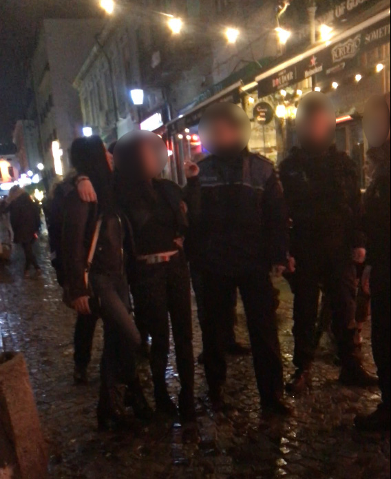 Cele două se clatină când vorbesc cu polițiștii