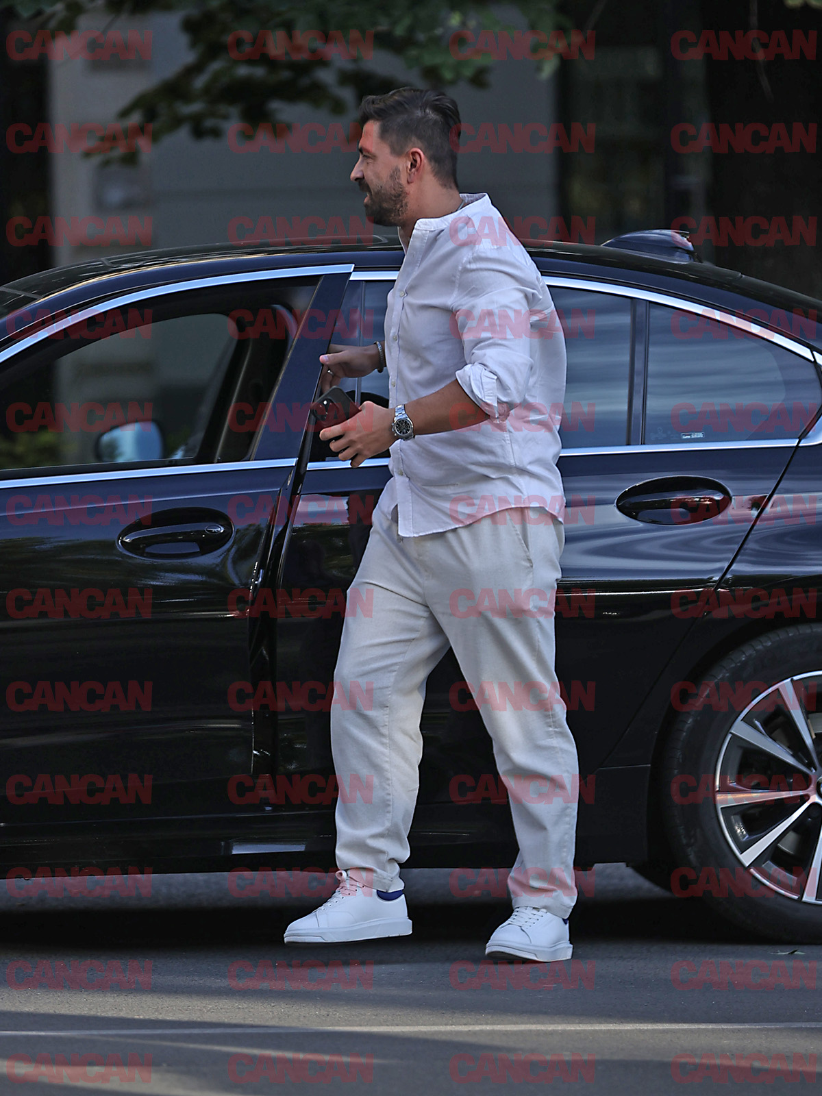 Îmbrăcat în alb, Marian a așteptat minute bune după partenera sa.