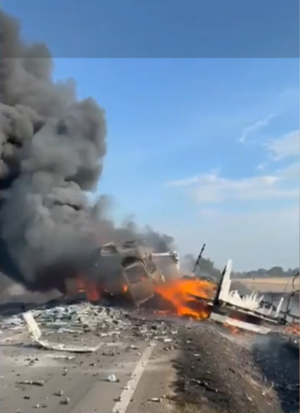 Dezastru în Mehedinți! Accident grav cu două TIR-uri şi o maşină. La scurt timp după impact, a izbucnit un incendiu de proporții