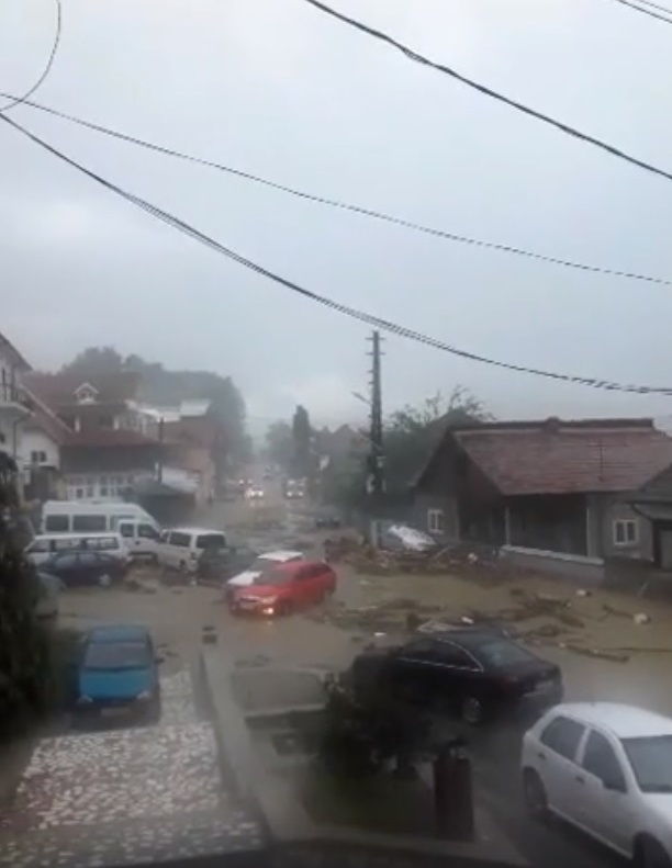 Dezastru în Vaideeni, Vâlcea: 50 de locuinţe inundate, mai multe maşini avariate