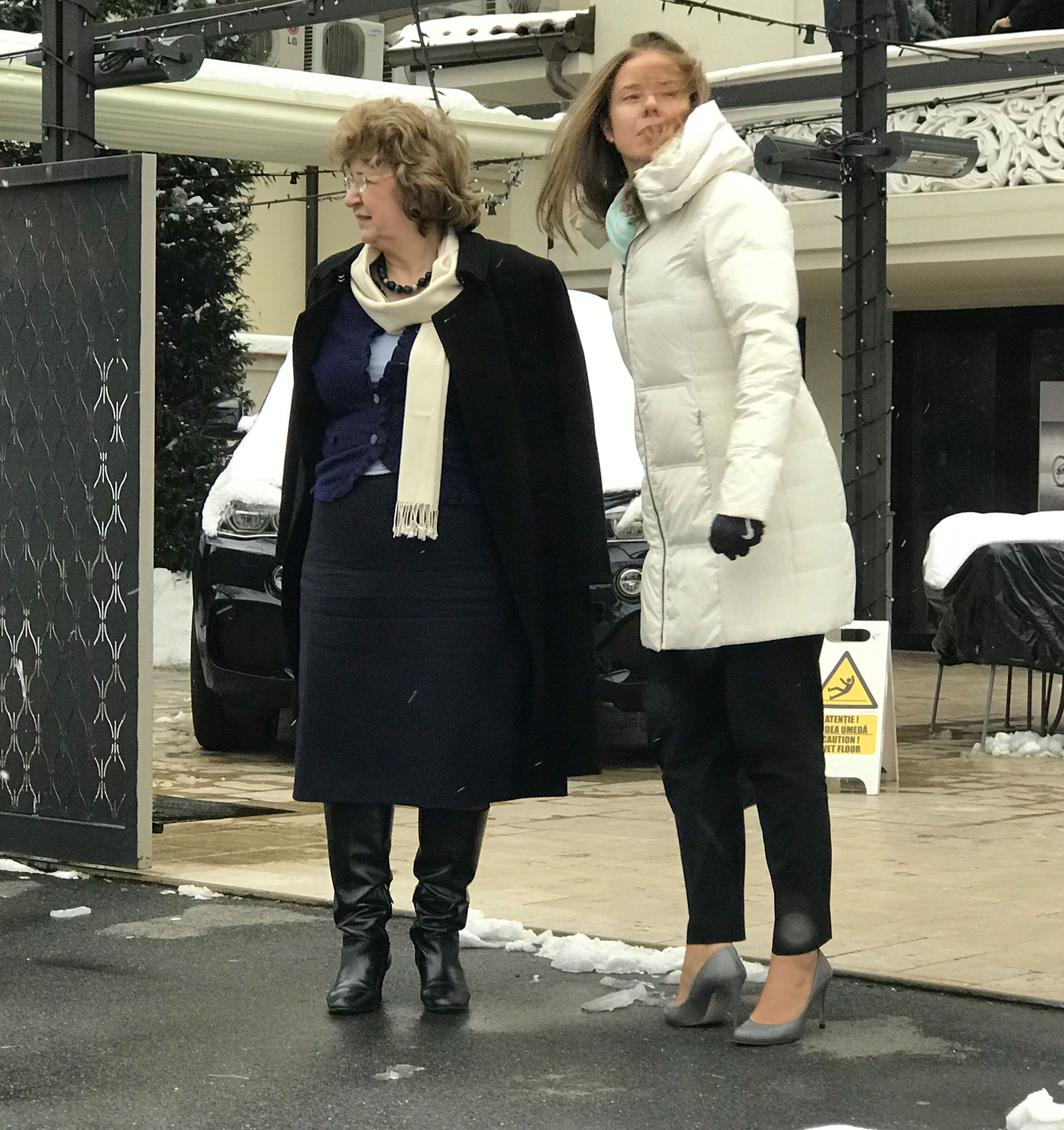 Christina Verchere și Mariana Gheorghe, zgribulite în frig (SURSA FOTO: CANCAN.RO)