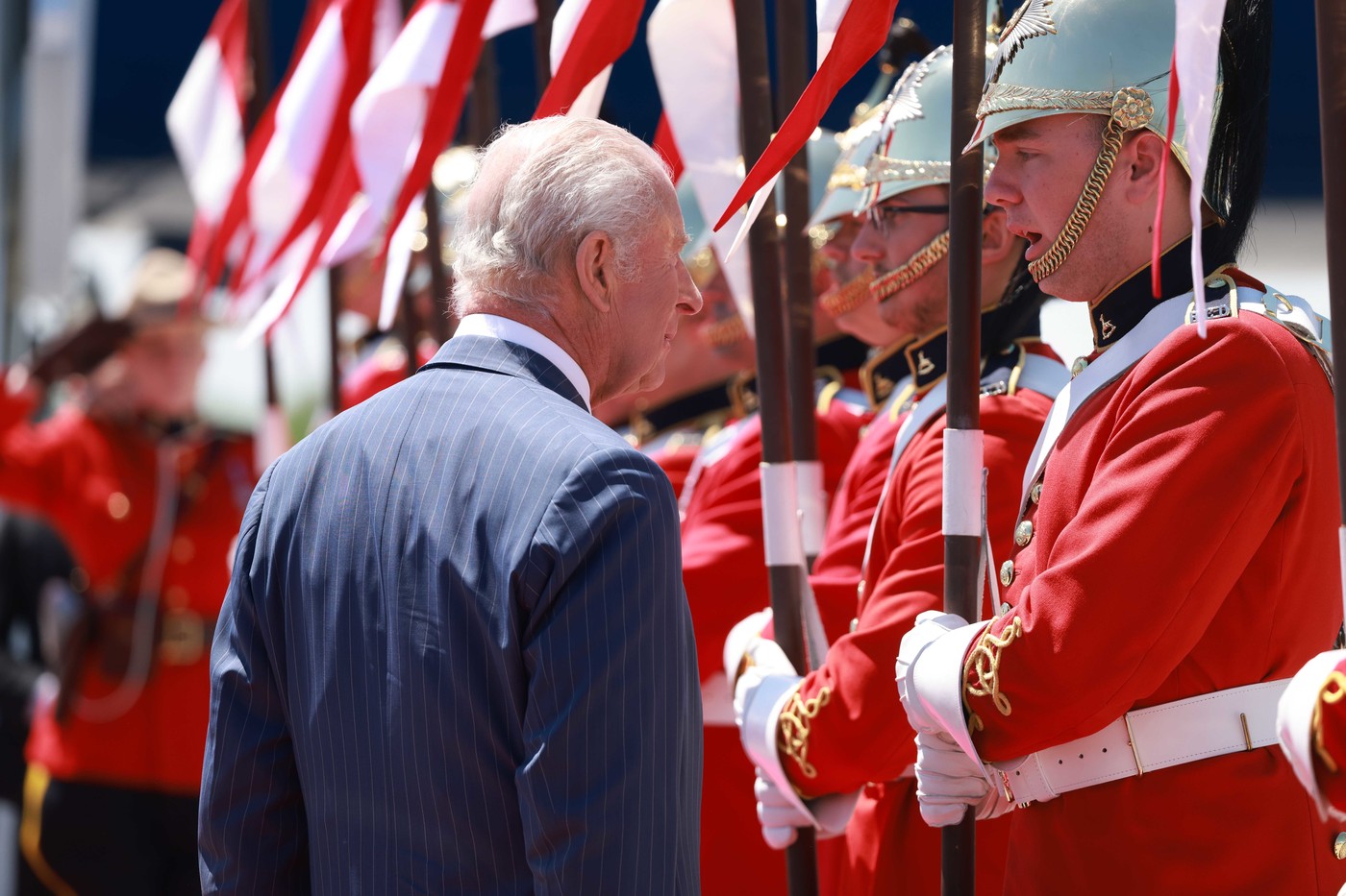 Regele Charles inspectează garda de onoare în fața clădirii Senatului din Ottawa marți, 27 mai 2025. Foto: Profimedia
