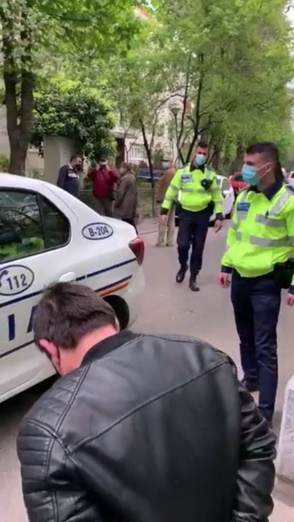 Imagine de la flagrantul în care a căzut "Titi Dumnezeu". Cu spatele, încătușat, este unul dintre complicii escrocului