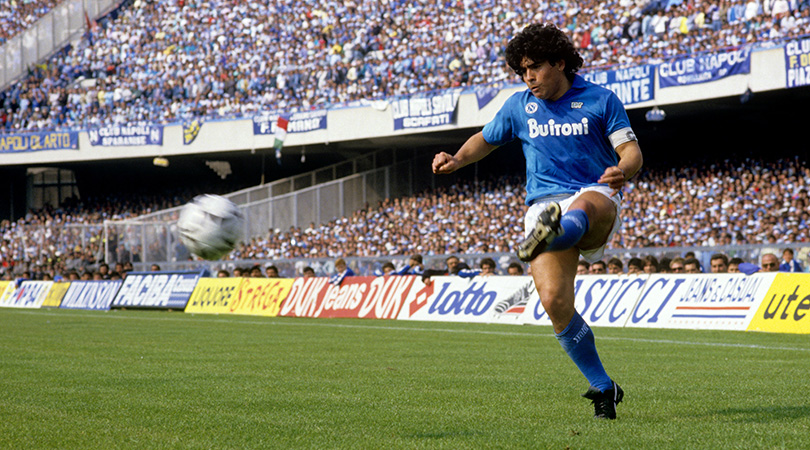 Argentinian Diego Maradona in action for Napoli