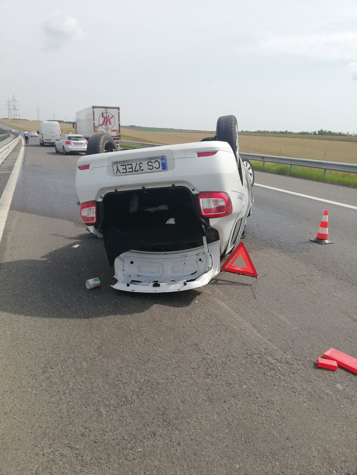 Loganul răsturnat pe autostradă