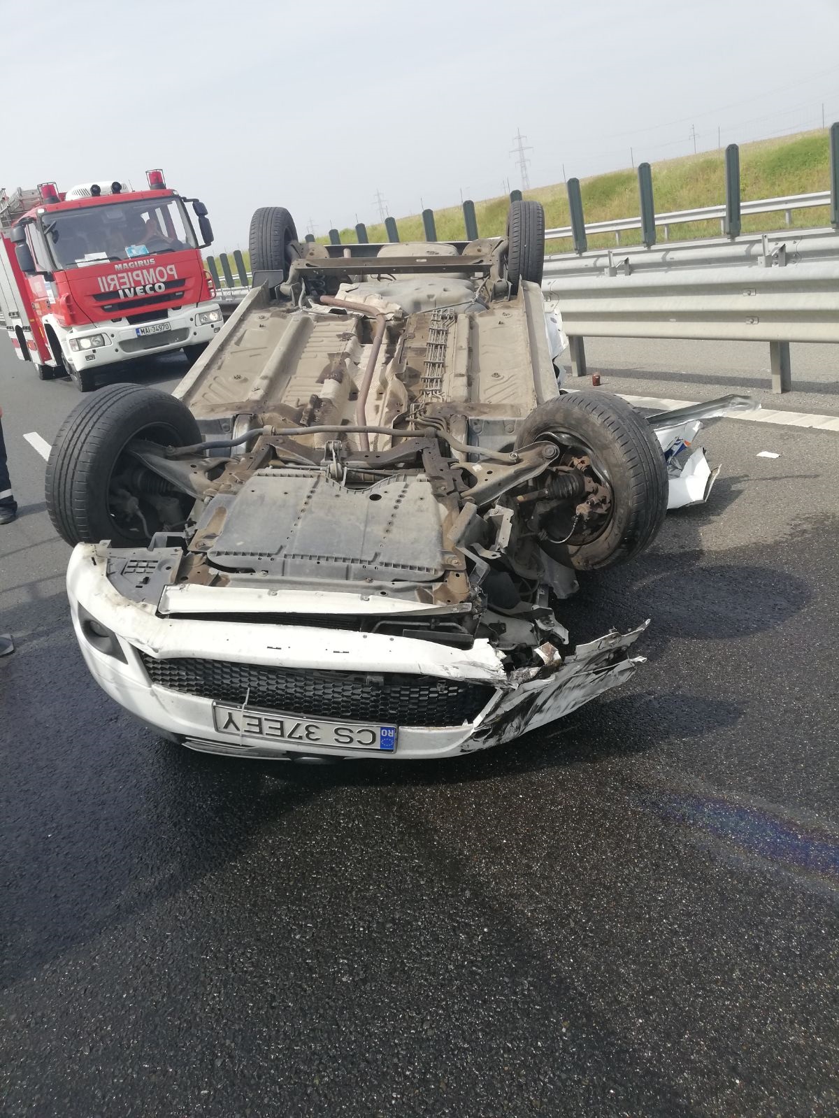 Loganul răsturnat pe autostradă