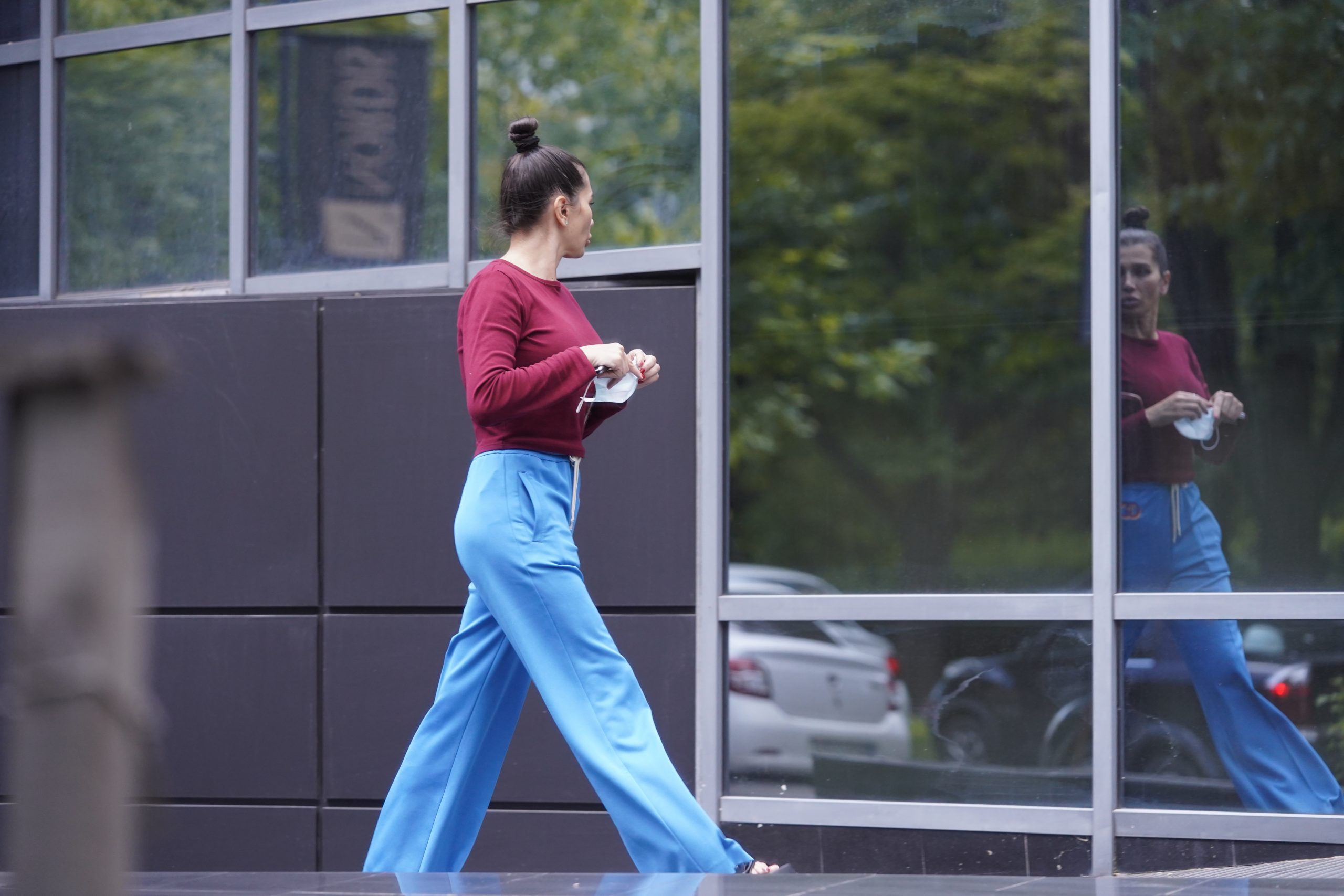 Elena Băsescu s-a admirat în ferestrele mari ale clădirii
