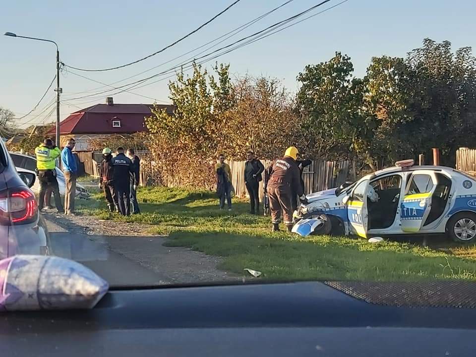 Echipaj de poliție în misiune, implicat într-un accident la Buhuși. Trei persoane au fost rănite