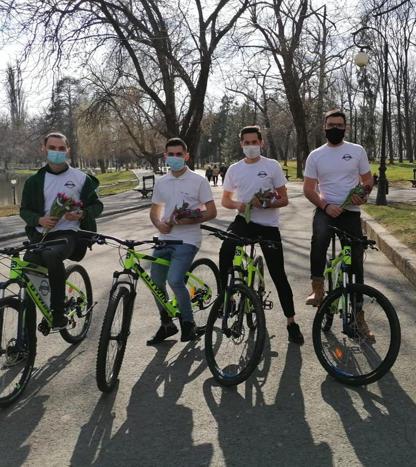 Ei sunt studenții-bicicliști care livrează legume pe orice vreme