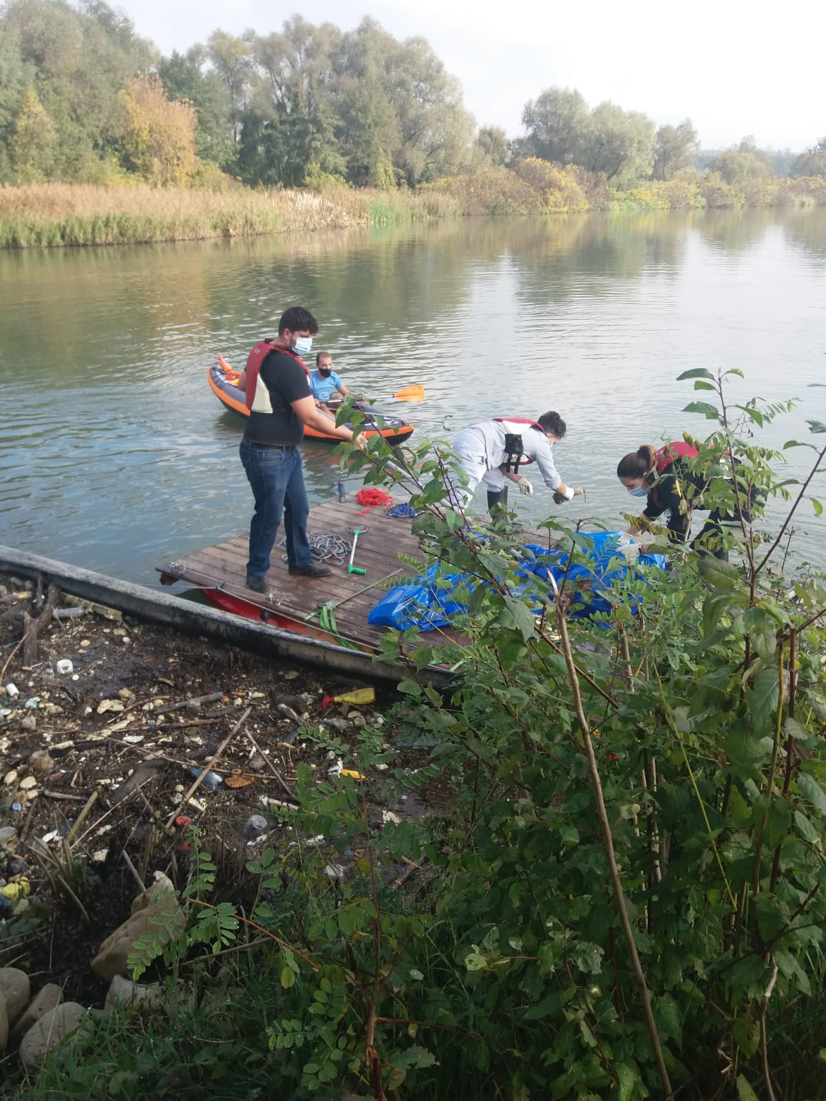 Ei sunt voluntarii care strâng peturile de pe Jiu. „Să nu ajungă niciun plastic în Dunăre”