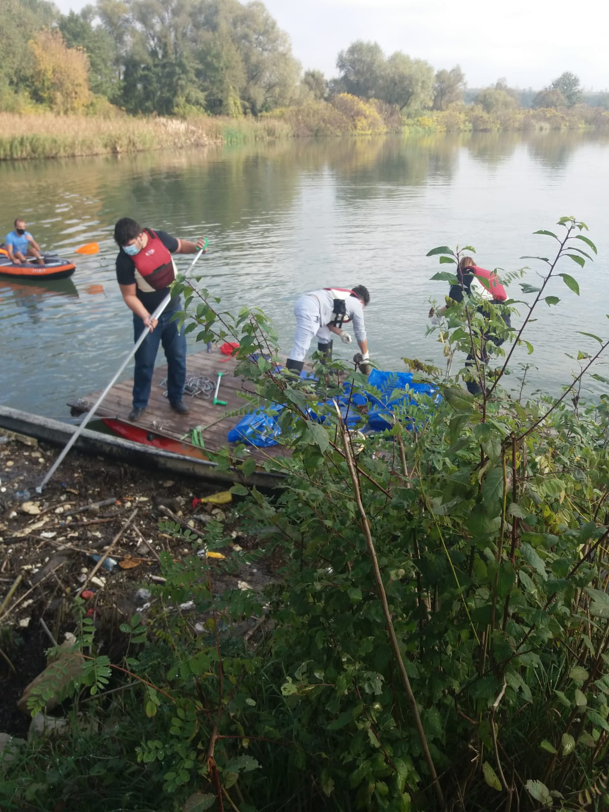 Ei sunt voluntarii care strâng peturile de pe Jiu. „Să nu ajungă niciun plastic în Dunăre”