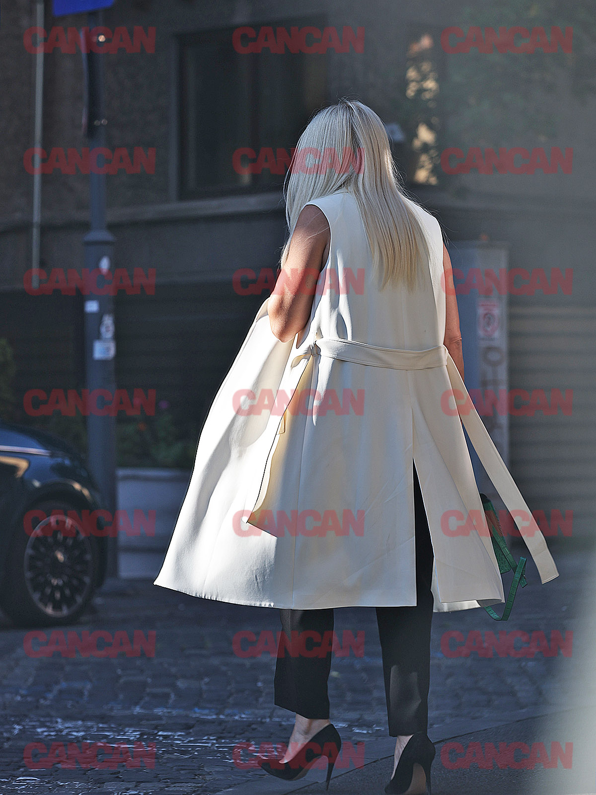 Elena Udrea se îndreaptă către o clădire de birouri de notariat